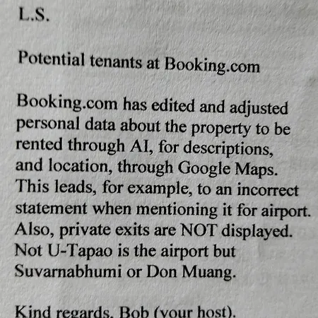 For your convenience, this apartment comprises a mini-kitchen with a toaster, a cooktop, and glassware provided. U-Tapao Rayong-Pattaya International airport is at a 48-minute driving distance, and Public 'songteo' to Sukhumvit bus stop is in proximity to this apartment.